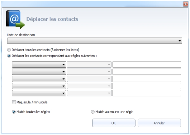 En particulier, si vous choisissez de déplacer des contacts spécifiques vous pouvez le faire simplement en fixant vos regles.